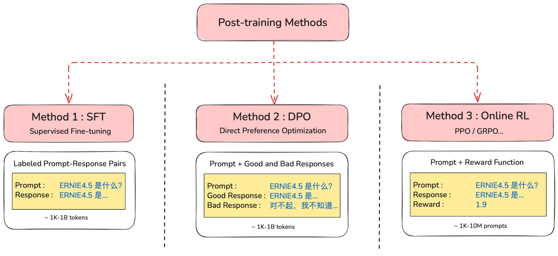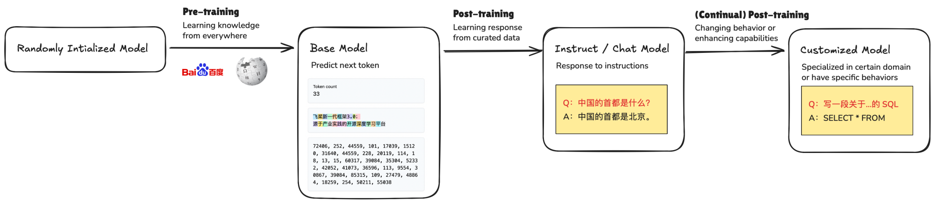 为了解决这些问题,我们需要进行 后训练 (Post-training)。后训练主要有以下几种方法: