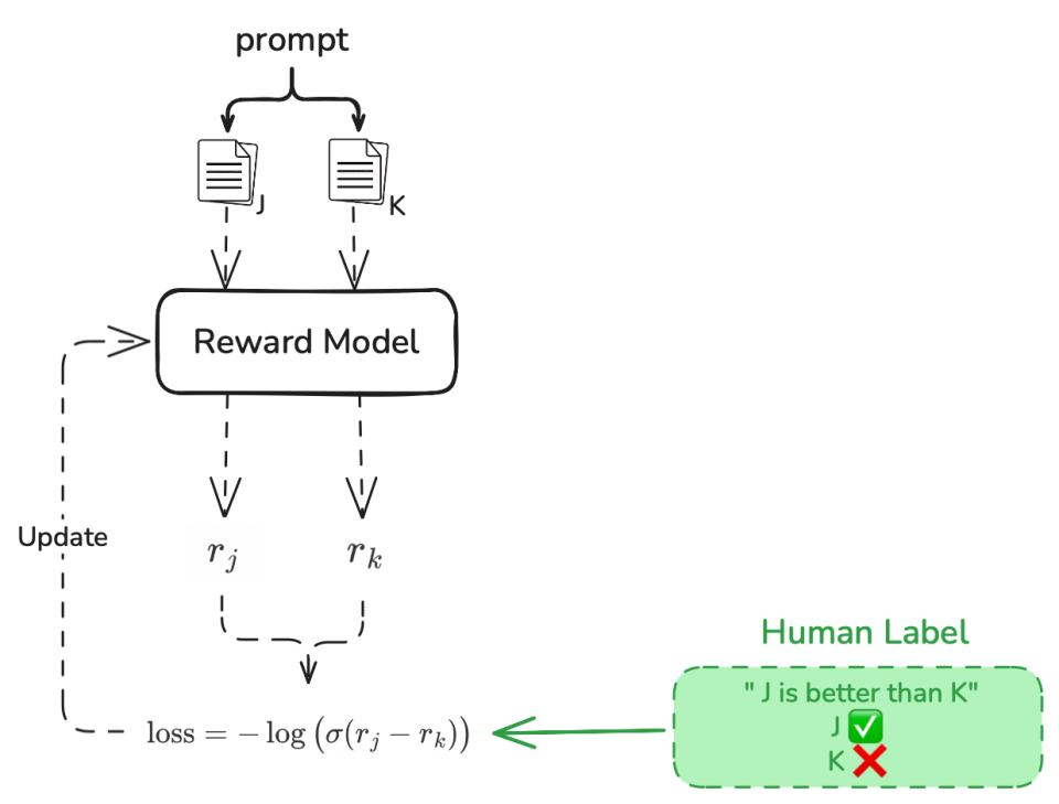 更好”。 - 用该损失更新 Reward Model,使其能更准确地预测人类偏好。