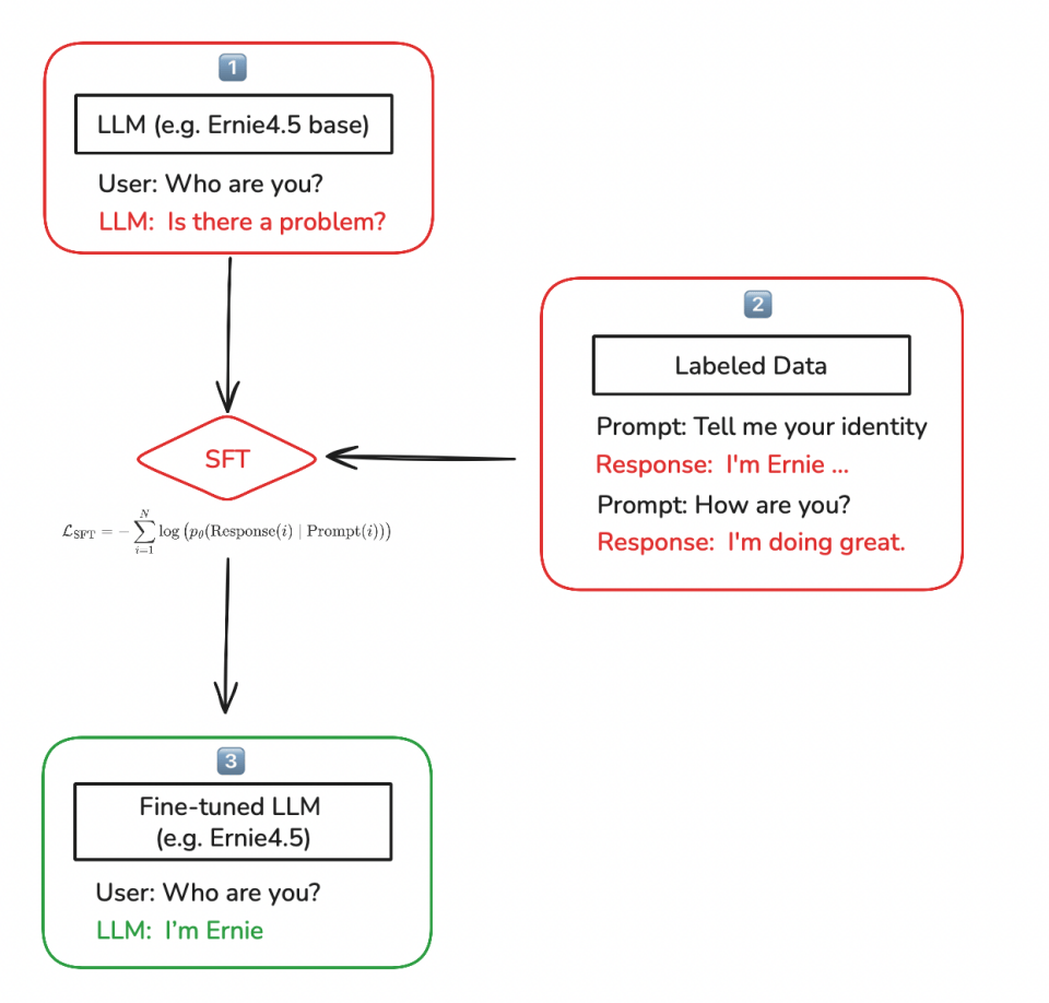 SFT 的目标是让模型学习、模仿这些数据中标注的行为。